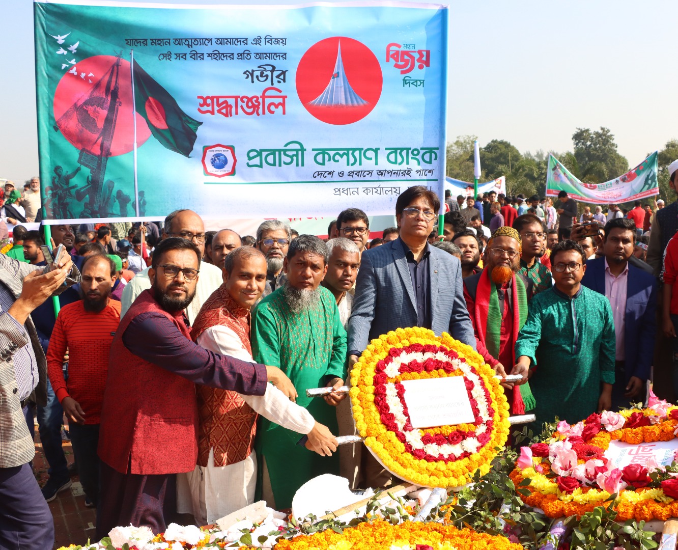 ১৬ ডিসেম্বর ২০২৪ মহান বিজয় দিবস উদযাপন উপলক্ষে প্রবাসী কল্যাণ ব্যাংকের পক্ষ থেকে ব্যাংকের সম্মানিত ব্যবস্থাপনা পরিচালক জনাব চানু গোপাল ঘোষের নেতৃত্বে জাতীয় স্মৃতিসৌধ, সাভারে বিনম্র শ্রদ্ধা ও পুষ্পস্তবক অর্পণ করা হয়। সেখানে আরও উপস্থিত ছিলেন ব্যাংকের মহাব্যবস্থাপক জনাব মোঃ মিজানুর রহমান, ঢাকা উত্তর আঞ্চলিক কার্যালয়ের অঞ্চল প্রধান এবং ব্যাংকের সর্বস্তরের কর্মকর্তা ও কর্মচারীবৃন্দ।