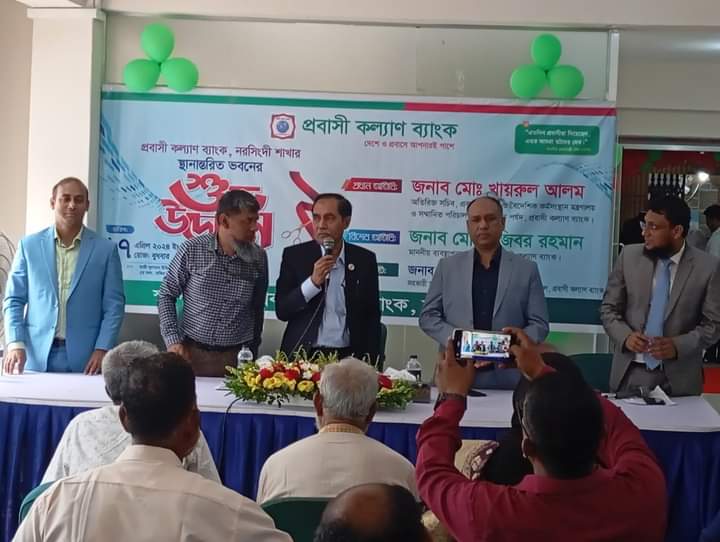 ১৭-০৪-২০২৪ তারিখে প্রবাসী কল্যাণ ব্যাংক নরসিংদী শাখা স্থানান্তরিত ভবনে শুভ উদ্বোধন ঘোষণা করা হয়।